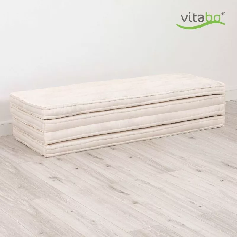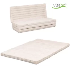 Die Vitabo Faltmatratze 140×200 cm ist für Singles und Paare gleichermaßen geeignet. Ihre formstabile Qualität stützt den Rücken sanft ab. Atmungsaktive Kapokfasern schaffen ein wohltuendes Schlafklima. Der Tag beginnt erholt und entspannt.