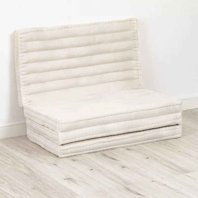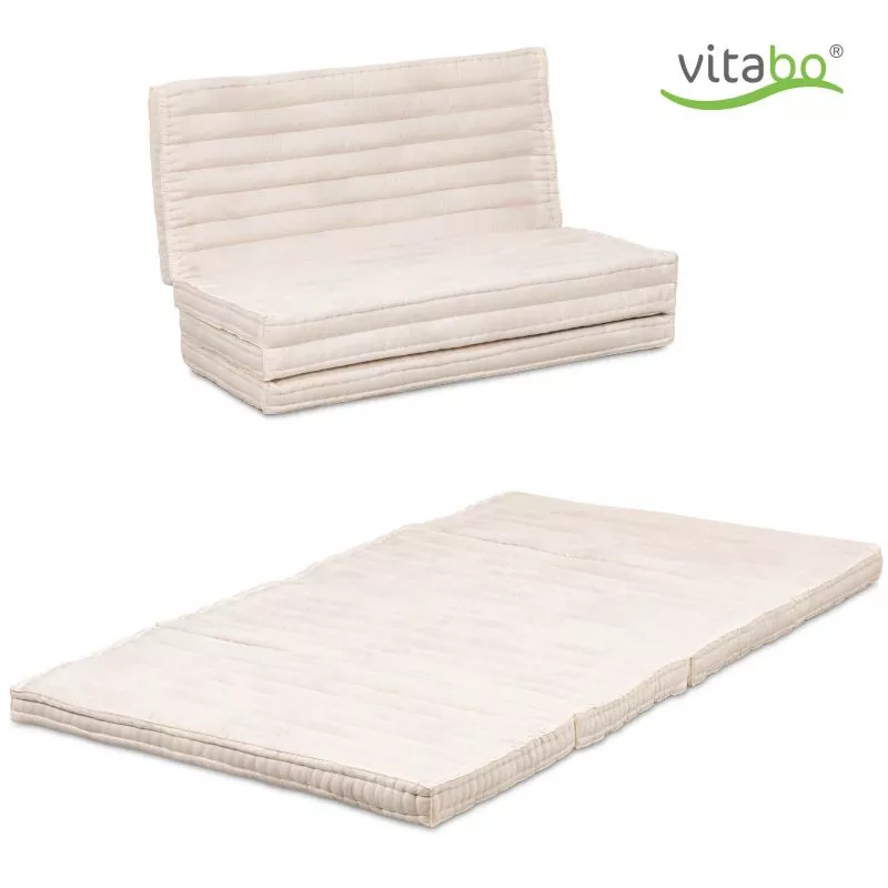 Die Klappmatratze bietet einen hohen Schlafkomfort in jeder Jahreszeit. Temperatur- und feuchtigkeitsregulierende Eigenschaften durch einen natürlichen Wachsüberzug sowie die wasserabweisende Beschaffenheit der samtig weichen Pflanzendaune machen das Liegen entspannend. Ein Wärmestau wird vermieden, so steht traumhaften Nächten nichts mehr im Weg.