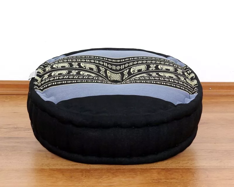 Kapok Bodensitzkissen, Deluxe (Schwarz/Elefanten Seide)