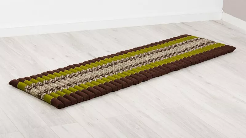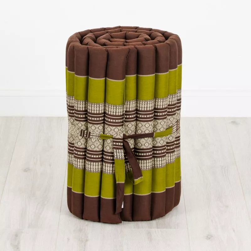 Du liegst gern bodennah auf einem Futon? Du magst Yoga und Meditation? Du bist gern unterwegs – auch mal spontan? Du magst Zelten, machst es dir gern in der Natur oder im eigenen Garten gemütlich? Du bist Fan der fernöstlichen Lebensweise? Wenn du auch nur eine der Fragen mit „ja!“ beantworten kannst, dann ist die rollbare Thaimatte mit 50 Zentimeter Breite genau das Richtige Wohnaccessoire für dich. Sie ist Zuhause und unterwegs sehr nützlich. Selbst als Gästebett oder Reisematratze im Kofferraum des Kombi begeistert die Rollmatte.
