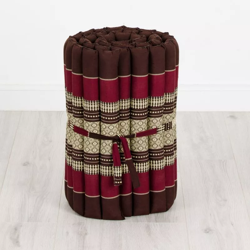 Du liegst gern bodennah auf einem Futon? Du magst Yoga und Meditation? Du bist gern unterwegs – auch mal spontan? Du magst Zelten, machst es dir gern in der Natur oder im eigenen Garten gemütlich? Du bist Fan der fernöstlichen Lebensweise? Wenn du auch nur eine der Fragen mit „ja!“ beantworten kannst, dann ist die rollbare Thaimatte mit 50 Zentimeter Breite genau das Richtige Wohnaccessoire für dich. Sie ist Zuhause und unterwegs sehr nützlich. Selbst als Gästebett oder Reisematratze im Kofferraum des Kombi begeistert die Rollmatte.