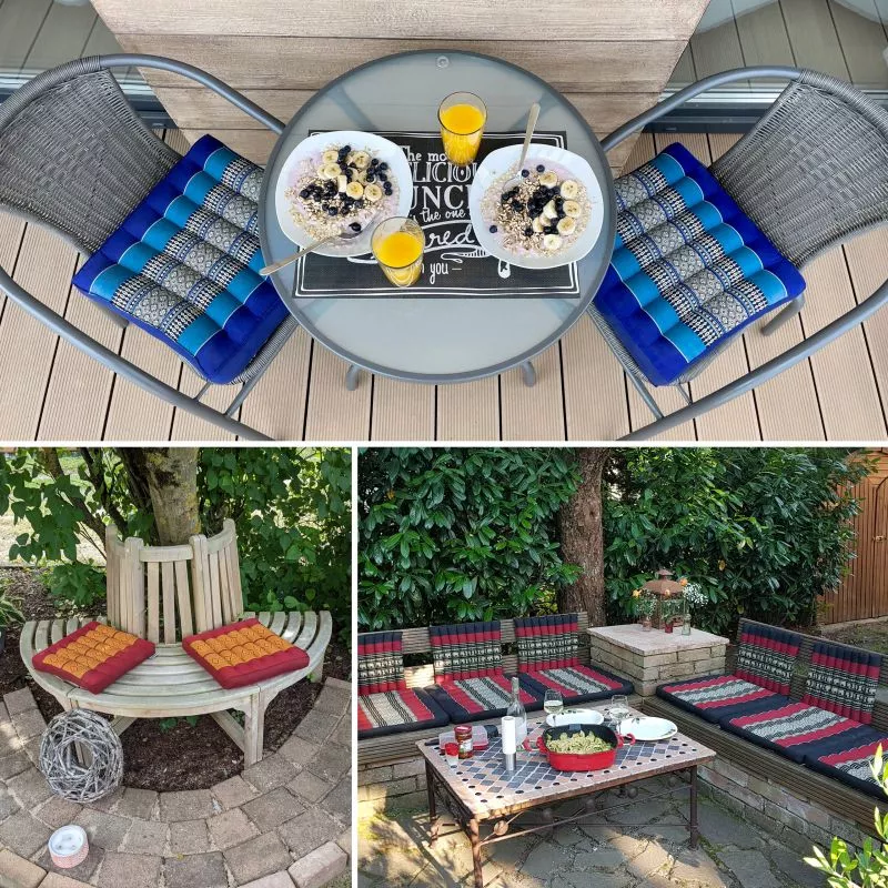 - Bring Farbe in deine vier Wände: Die bunten Sitzkissen bringen echtes asiatisches Urlaubsfeeling zu dir nach Hause. Ob draußen oder drinnen, auf dem Boden oder Stuhl – die vielseitigen Polster bereichern jede deiner Sitzgelegenheiten