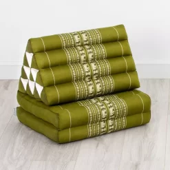 Das Kissen mit der besonderen Dreiecksform ist in Thailand altbekannt und ein typisches Sitz- und Liegepolster. Das Thaikissen lässt sich einfach ausklappen und zeigt sich entfaltet als einladende Liegewiese. Das integrierte Dreieckskissen dient als Rückenlehne. Das formfeste Kissen ist handgefertigt, formfest und robust – entspannt zurücklehnen erwünscht!