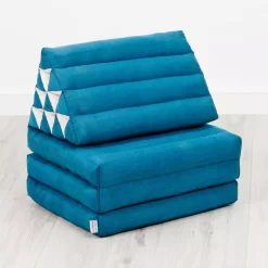 Das Geheimnis steckt im Dreieck. Es ist formfest und dient als gemütliche Rückenlehne. Die drei klappbaren Auflagen zeichnen sich ebenfalls durch ihre Festigkeit aus und machen das Thaikissen zum komfortablen Allrounder. Mit viel Herz wurde das Thaikissen in Handarbeit hergestellt. Es ist robust und langlebig. Die Füllung besteht zu 100% aus naturbelassener Kapokfaser (was die Pflanzendaune so besonders macht, erfährst du hier). Ihre feuchtigkeits- und wärmeisolierende Beschaffenheit sorgt dafür, dass das Kissen dir auch auf feuchtem, kühlem Boden – und sogar auf einem Boot – Bequemlichkeit spendet.