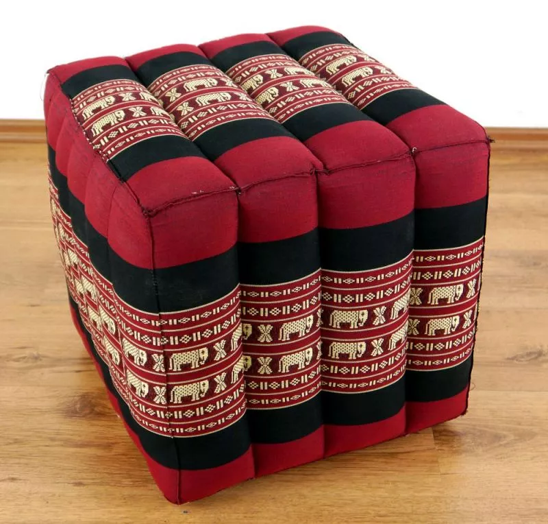 Das Würfelkissen dient als gemütliche Sitzgelegenheit im Wohnraum und draußen. Denn seine inneren Werte zählen: Die Füllung des formfesten Sitzkissens besteht zu 100% aus naturbelassenem Kapok. Die Kapokfaser ist feuchtigkeits- und wärmeisolierend, so werden auch kühle Abende komfortabel. Das farbenfrohe Thai-Design sorgt für einen strahlenden Blickfang im Kinderzimmer, im Wohnraum, wertet den Flur auf und gestaltet draußen eine Urlaubs-Lounge zum Ausspannen. Auch für Yoga oder zum Hochlegen der Beine nach einem schweren Tag eignet sich der Sitzwürfel.